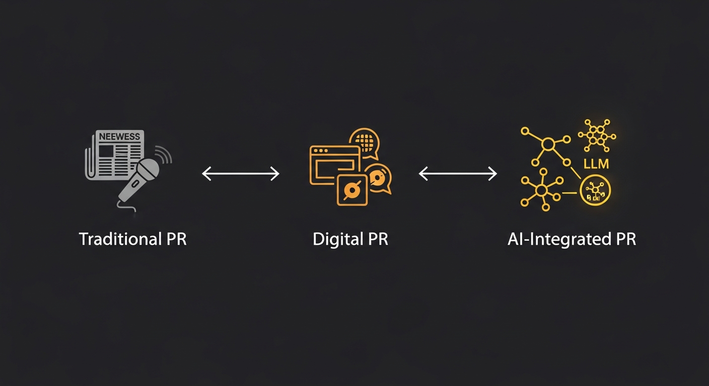 The evolution of enterprise communications: Traditional PR → Digital PR → AI-Integrated Communications.